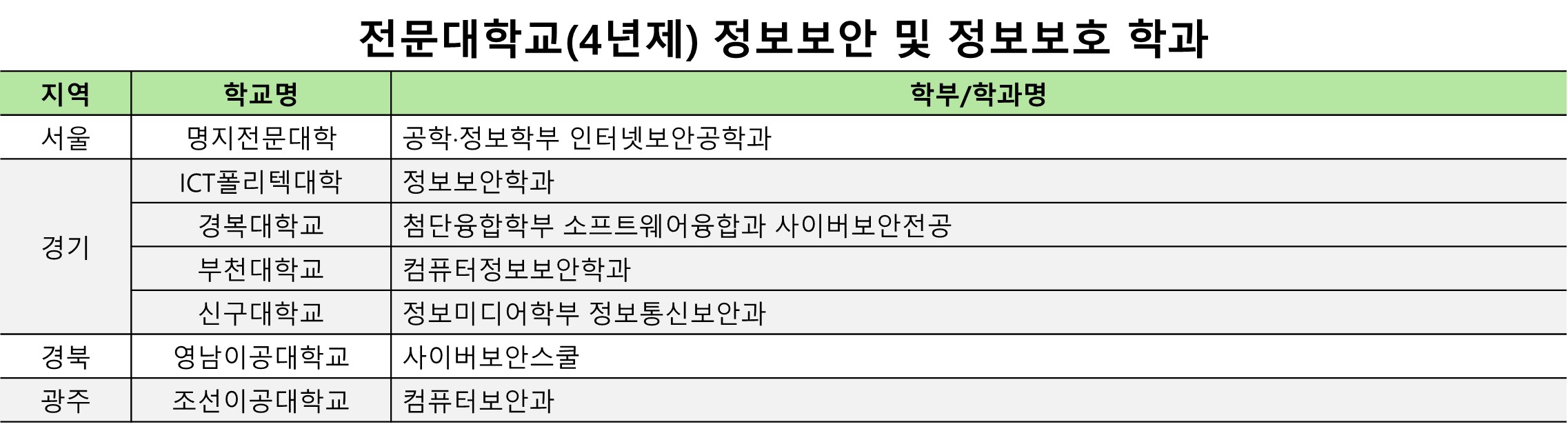3. 대학교 정보보안 및 정보보호 전공 개설 현황