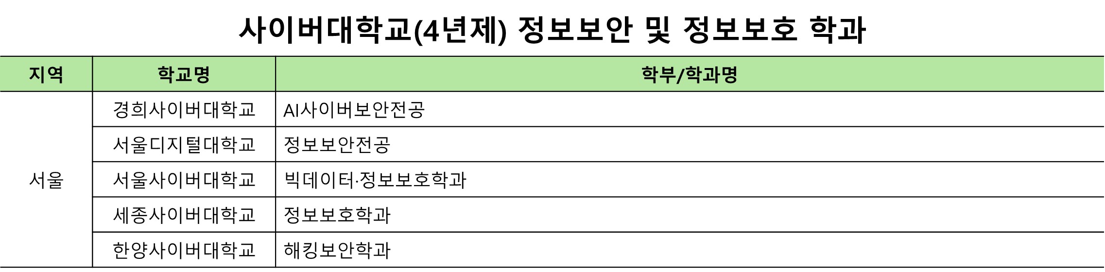 이번에는 정보보안 전문가가 되기 위해 정보보안 및 정보보호를 전공하기 위해서 어떤 대학에 어떠한 학과가 개설되어 있는지 살펴보겠습니다.