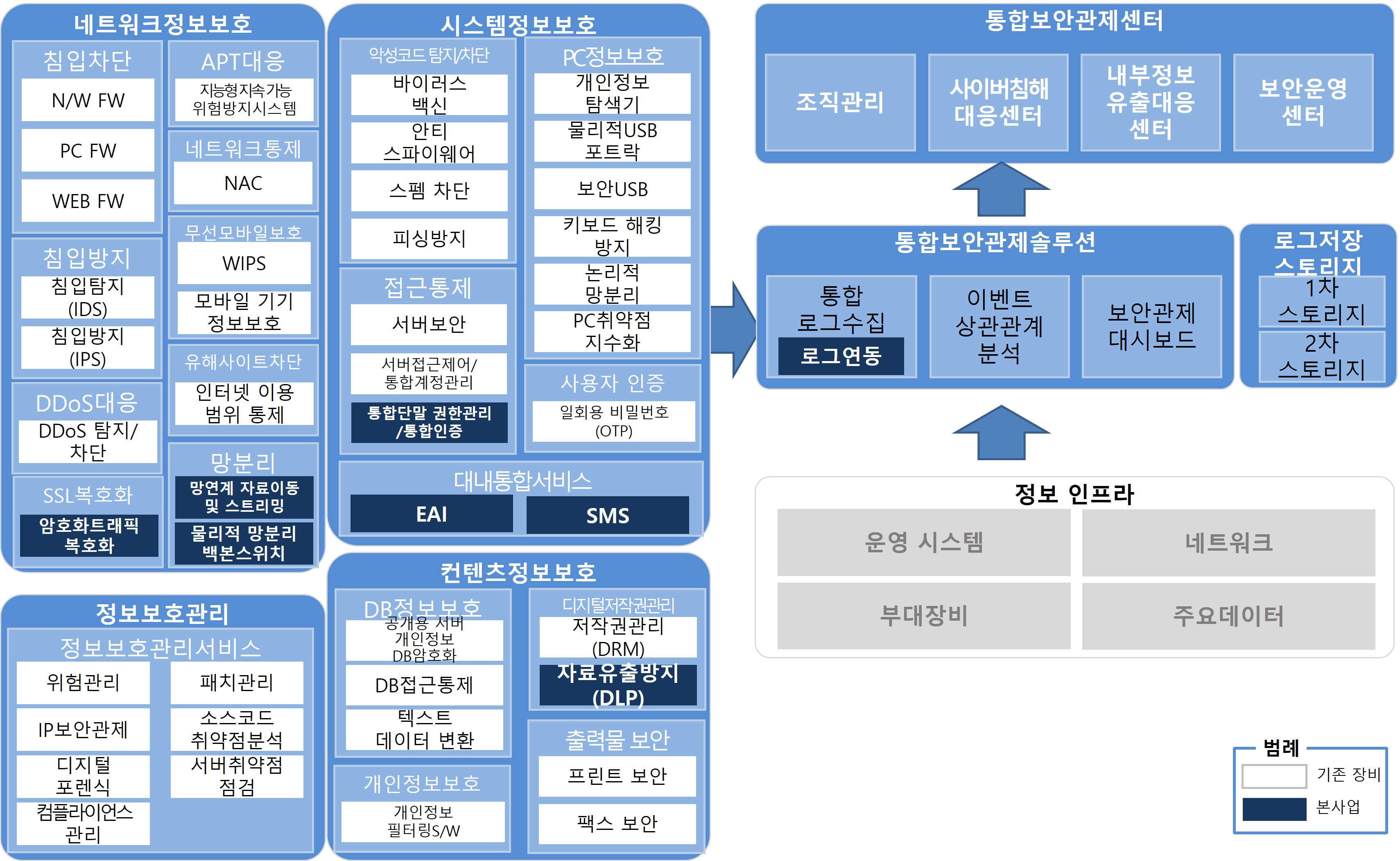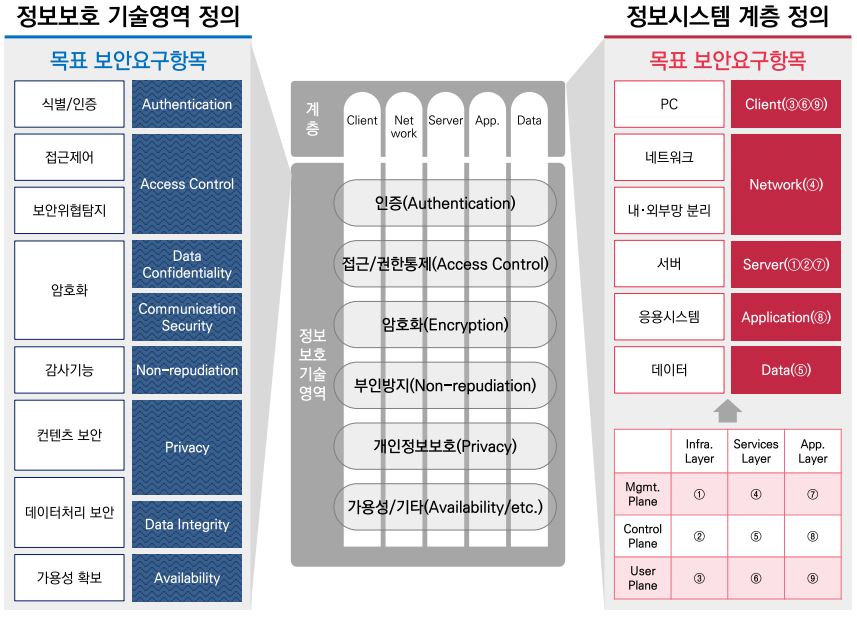 보안 SI는 법∙규제 요건과 각 산업별로 고려해야 보안 시스템 아키텍처(Architecture)에 기반하여 구축을 해야 합니다.