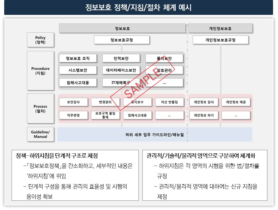 3) 고객사의 정보시스템 및 업무 환경 특성을 고려 정책 및 지침, 절차를 단계적 구조로 제정합니다.